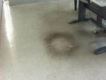 使用洗地機(單叉機)加除蠟水,去除地麵的蠟。然後使用洗地機加清潔劑清洗地麵、晾幹。